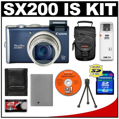 Canon PowerShot SX200 IS 12x Zoom Digital Camera (Blue) + 4GB SD Card + Case + NB-5L + Accessory Kit Review
