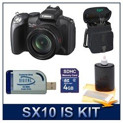 Compact Camcorder / Digital Camera Deluxe Carrying Case - DP5000Three Piece Lens Cleaning KitPowershot SX10 IS 10MP Digital CameraHi-Speed SD USB 2.0 Card Reader4 GB Secure Digital High Capacity (SDHC) Memory Card