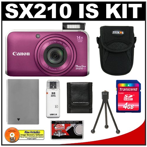 - <#1> Canon PowerShot SX210IS 14MP Digital Camera with 14x optical Zoom (Purple) PLUS + <#2> Transcend 4GB High-Capacity SecureDigital SDHC Card +
